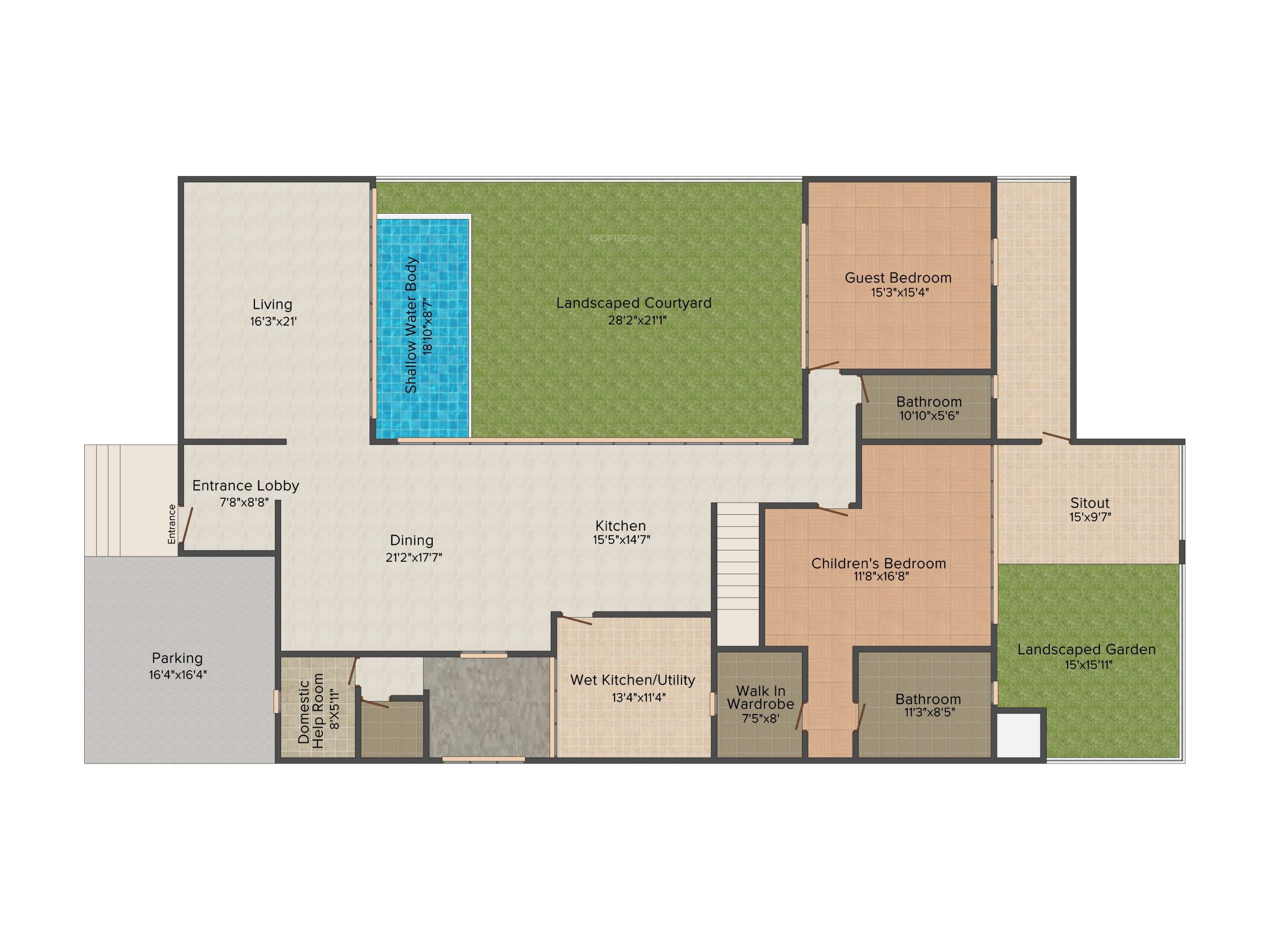 • Internal Door Flooring : Teak Wood Frames